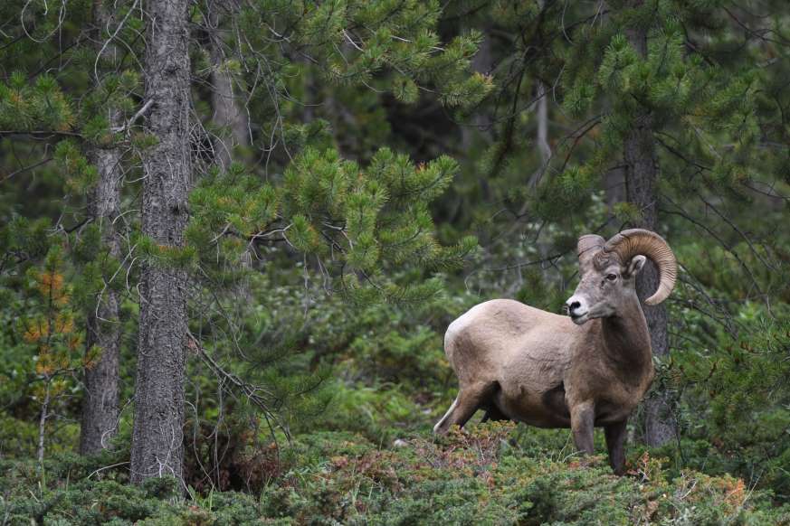 Canada: A bighorn sheep near Spray Lakes Reservoir